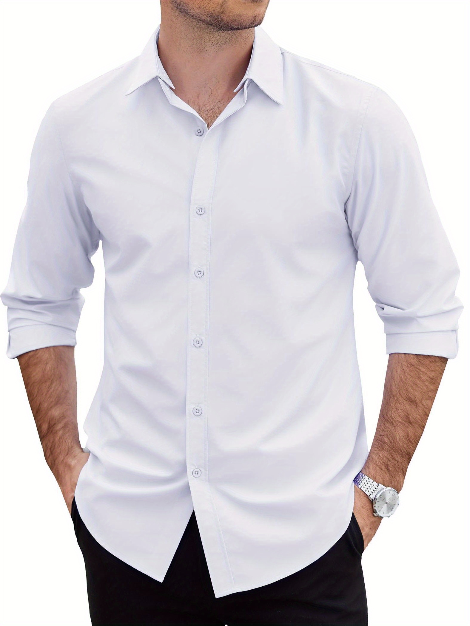 Men's 2-in-1 Formal & Casual Shirt with Detachable Collar - Long Sleeve, Wrinkle-Resistant Polyester Blend, Button-Up Business Style