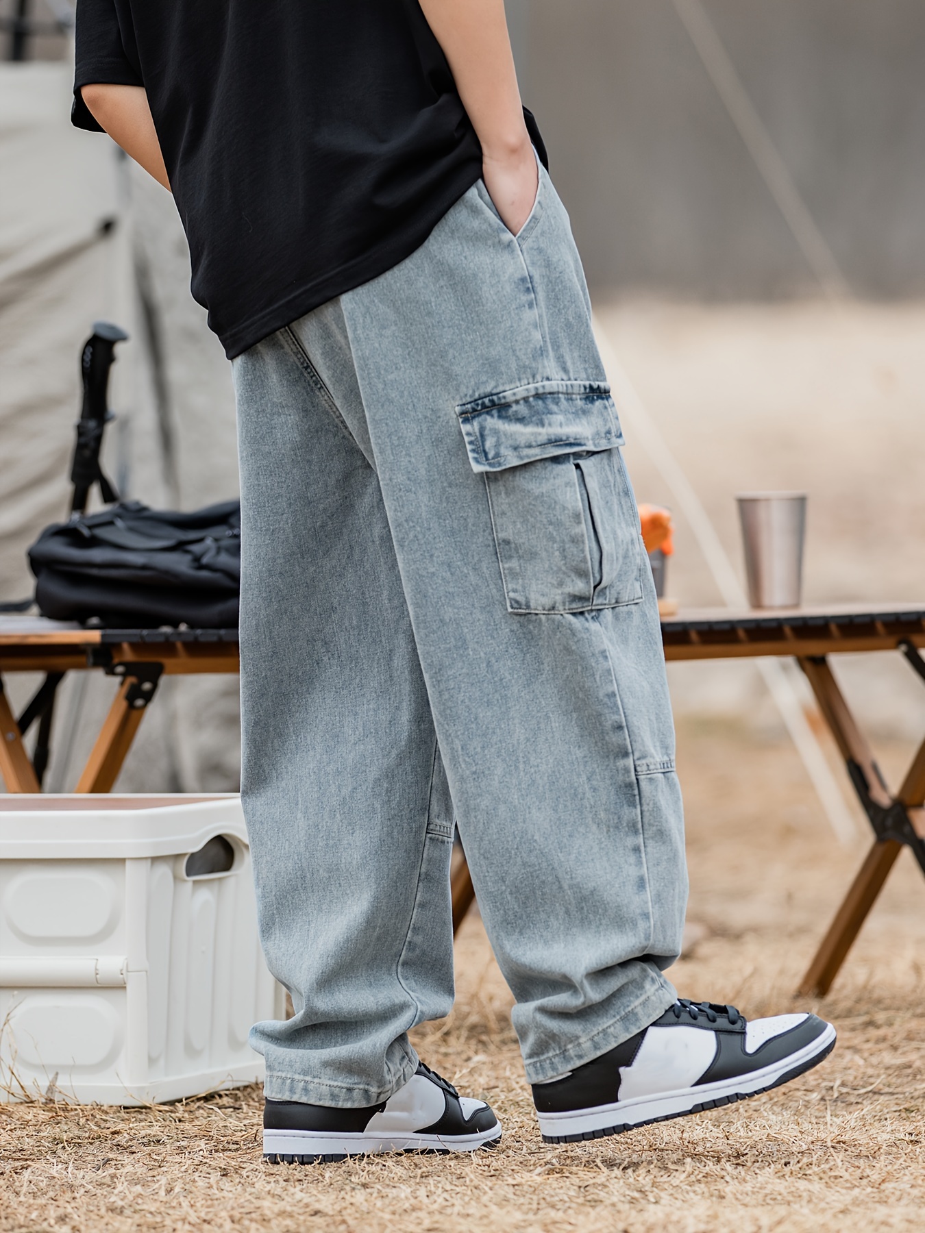 Men's Casual Loose-Fit Jeans with Unique 3D Pocket Design - Cotton Blend, Non-Stretch Denim for Spring/Fall