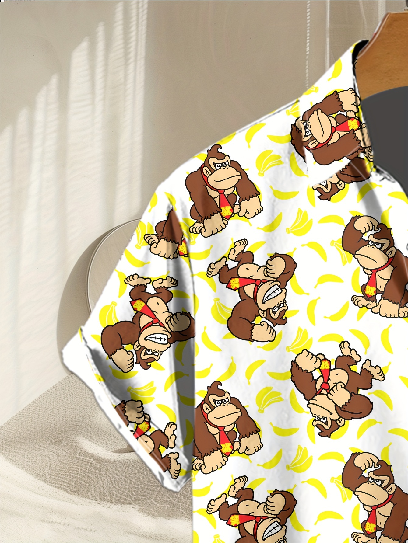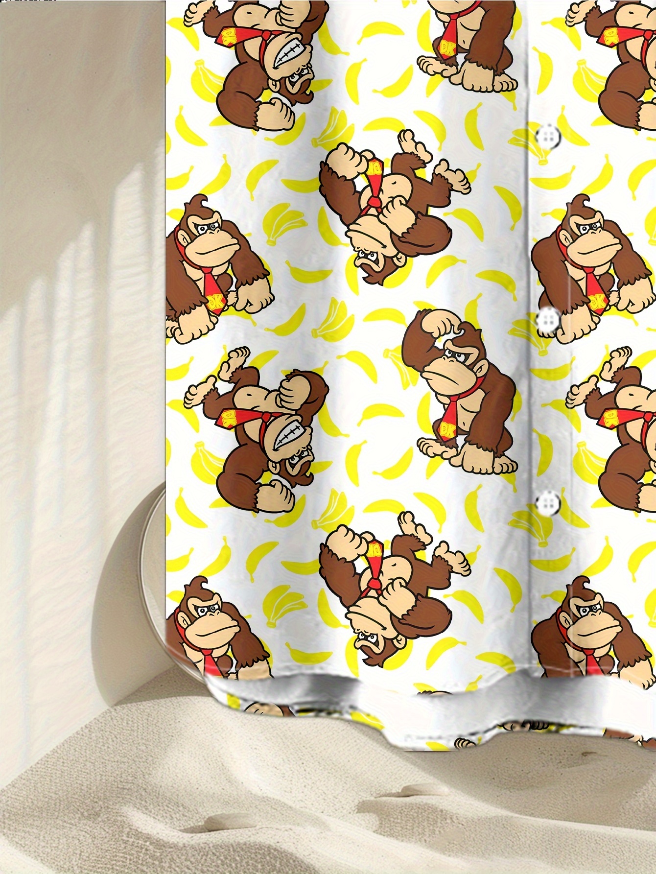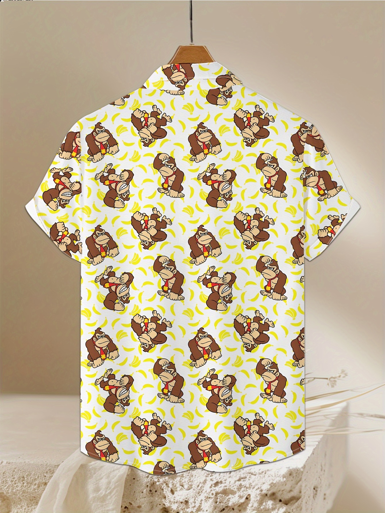 Trendy Collared, Men's Novelty Geometric Print Button-Up Shirt - Casual, Breathable Polyester, Machine Washable