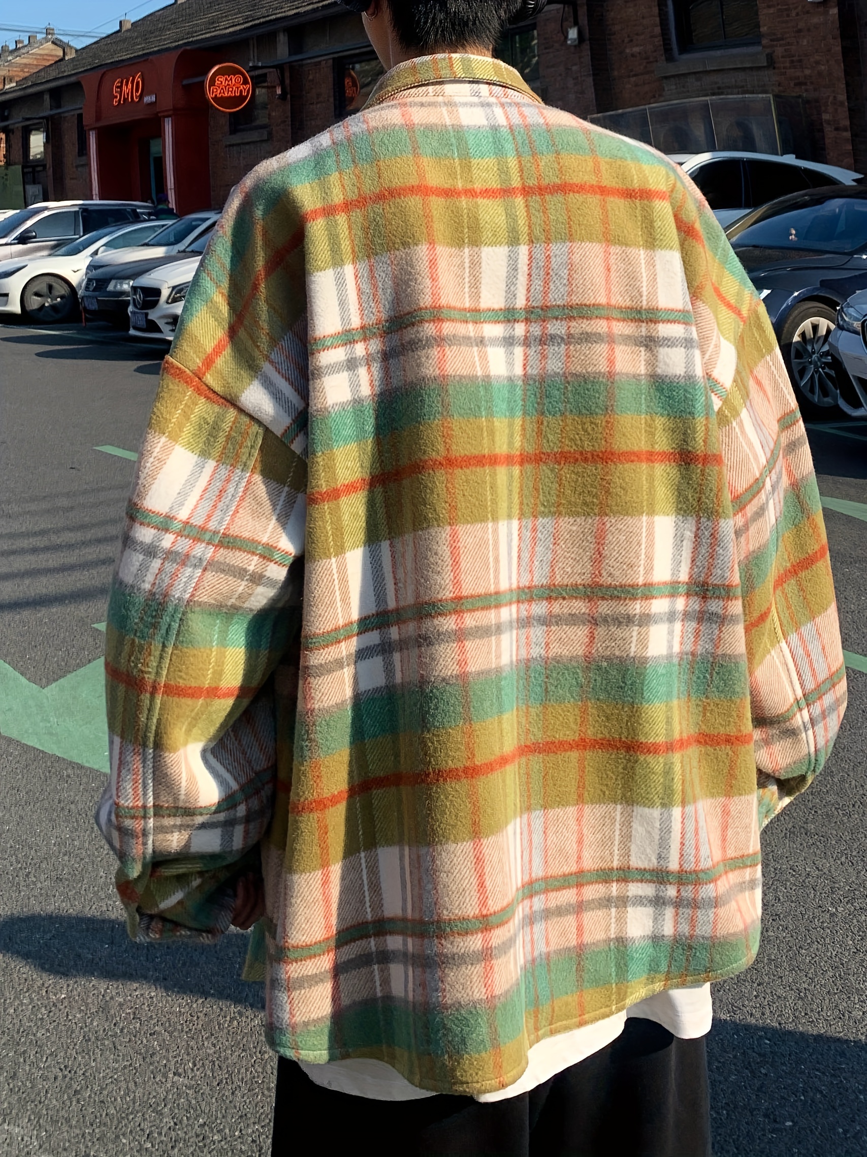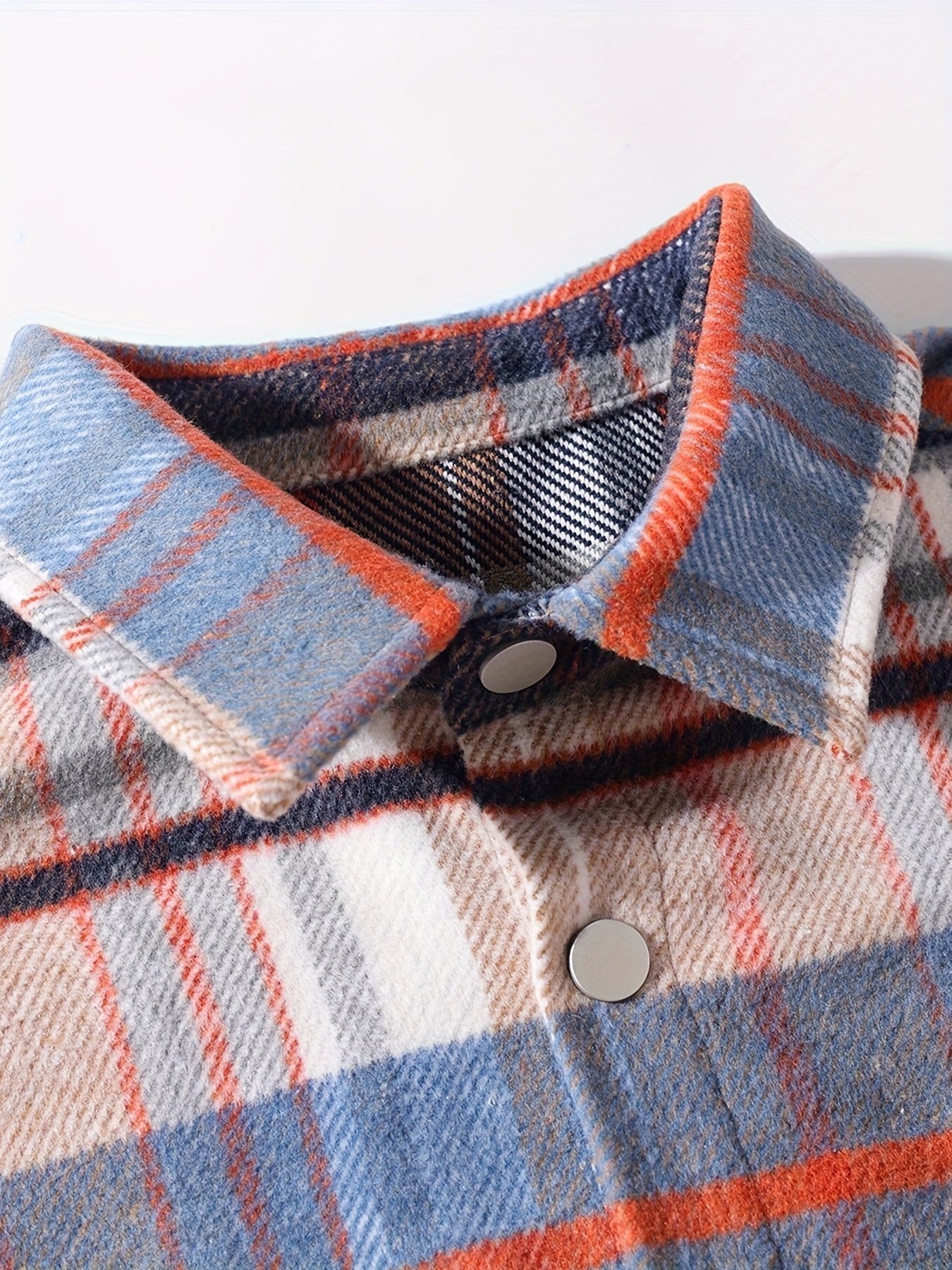 Color Block Plaid Men's Retro Long Sleeve Button Down Shirt With Chest Pockets, Spring Fall Casual Outdoor Loose Shirt