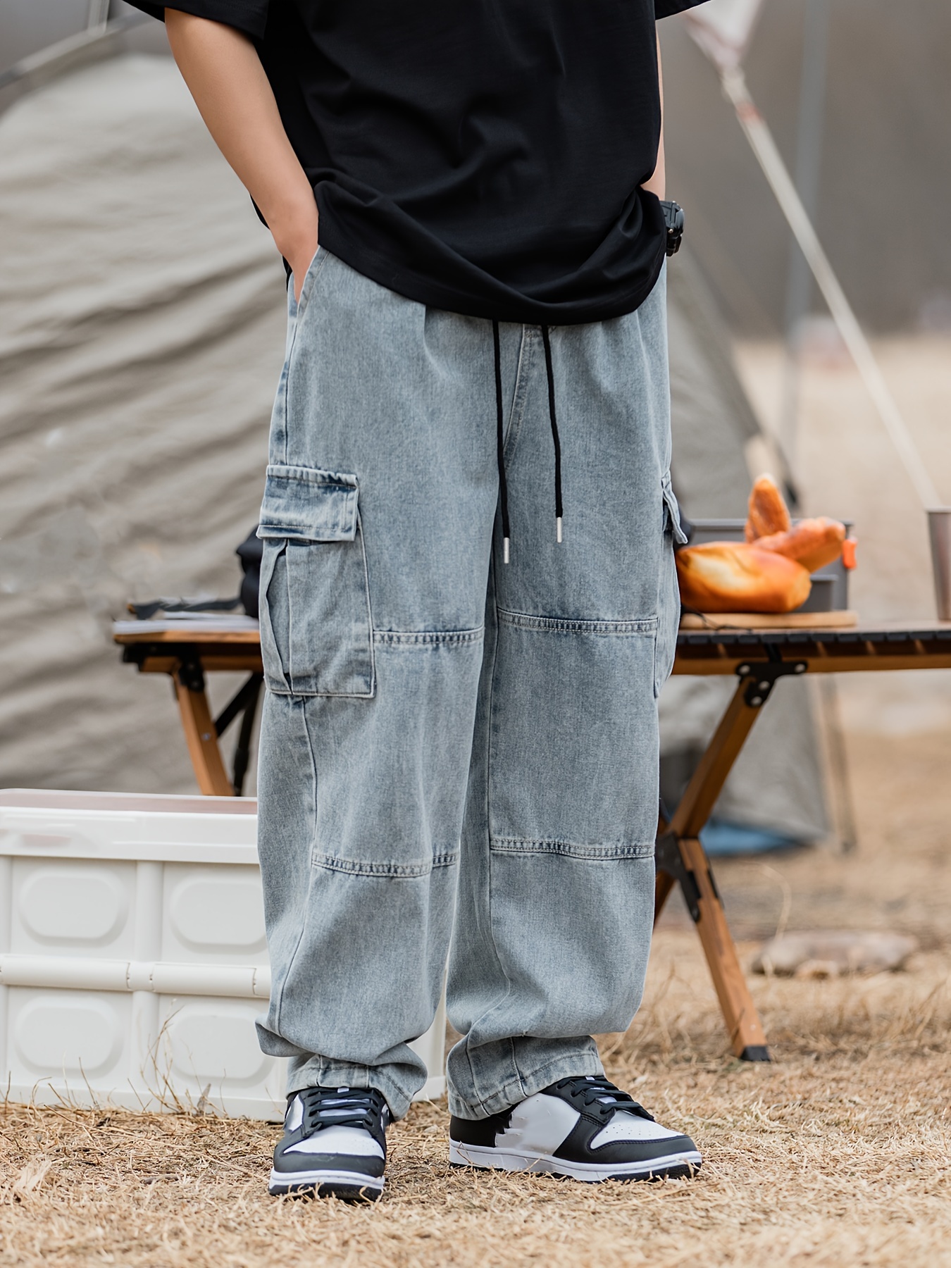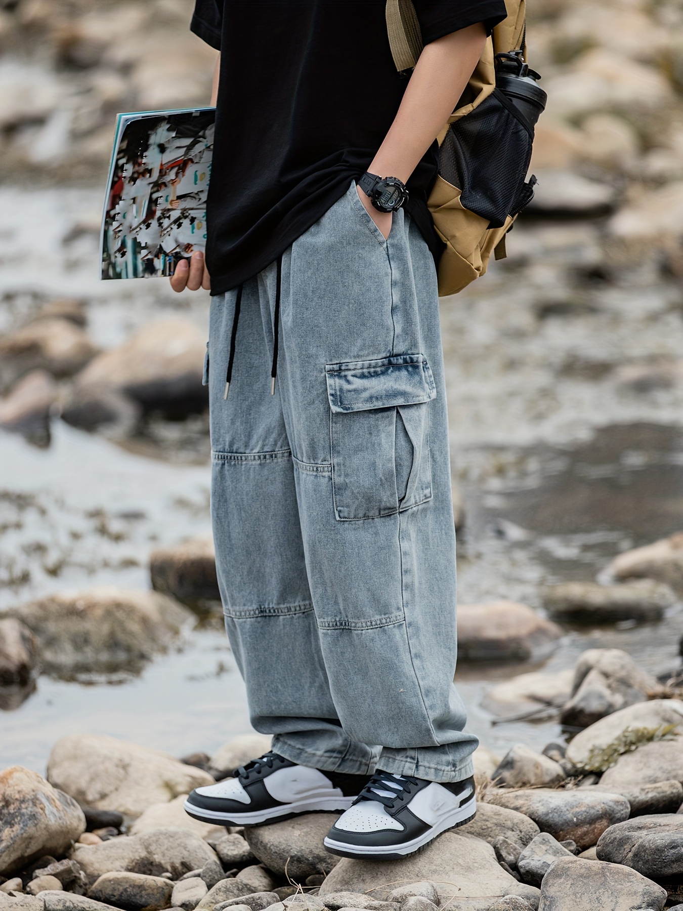 Men's Casual Loose-Fit Jeans with Unique 3D Pocket Design - Cotton Blend, Non-Stretch Denim for Spring/Fall