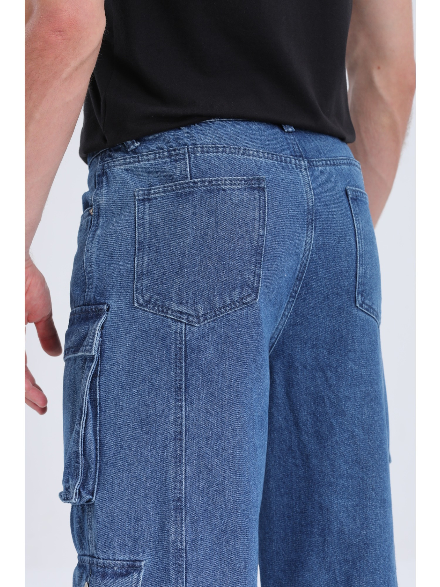 Enhance your daily look with these Men's Blue Multi-Pocket Denim Jeans. Tailored for the contemporary gentleman, these pants blend a relaxed fit with a straight-leg cut, striking a harmonious mix of ease and city chic. The lively blue color brings a fashionable touch, elevating these jeans to a key item in your closet. Equipped with numerous useful pockets, they offer plenty of space for your necessities, infusing a hint of functionality into their stylish appearance.