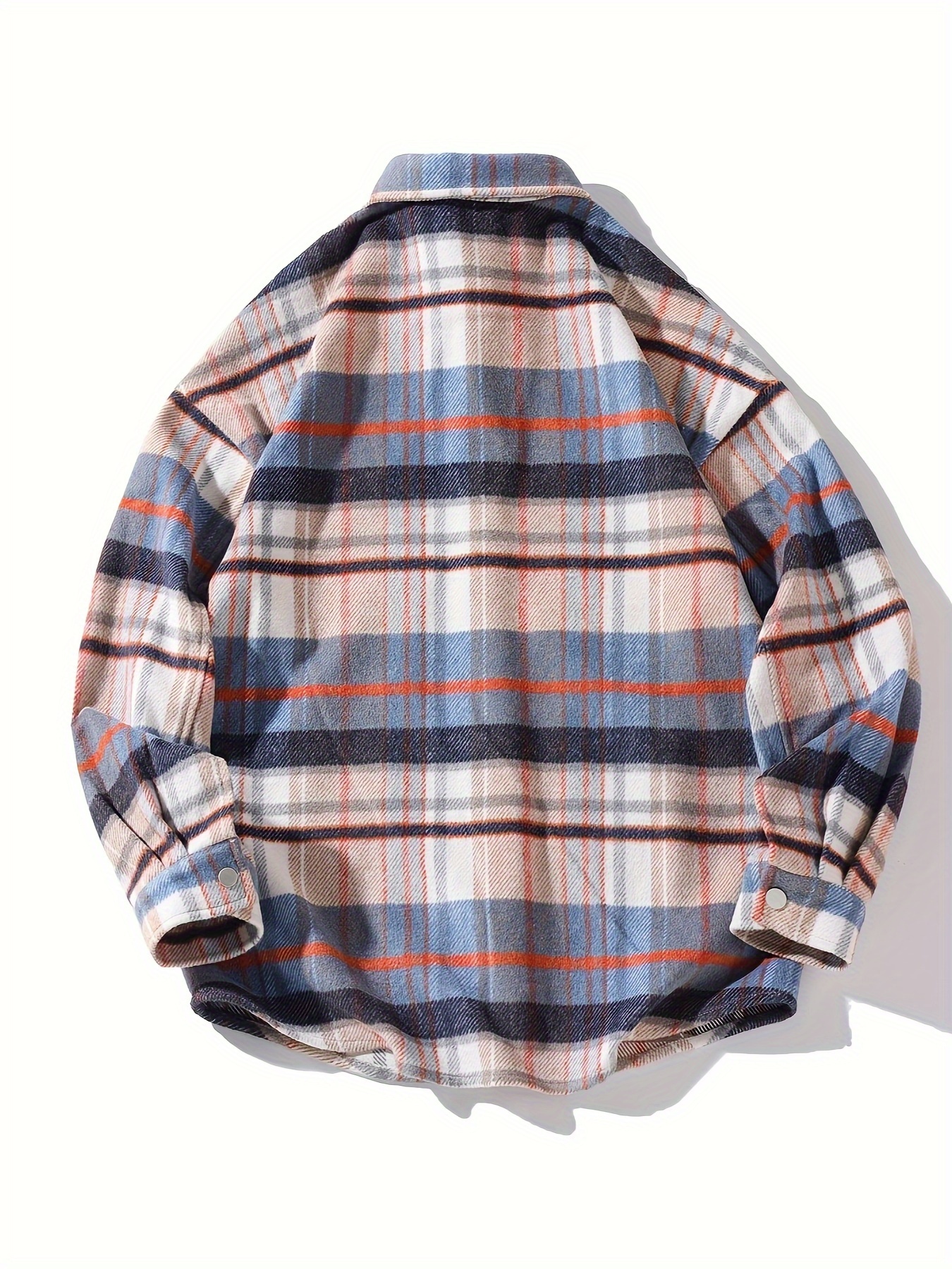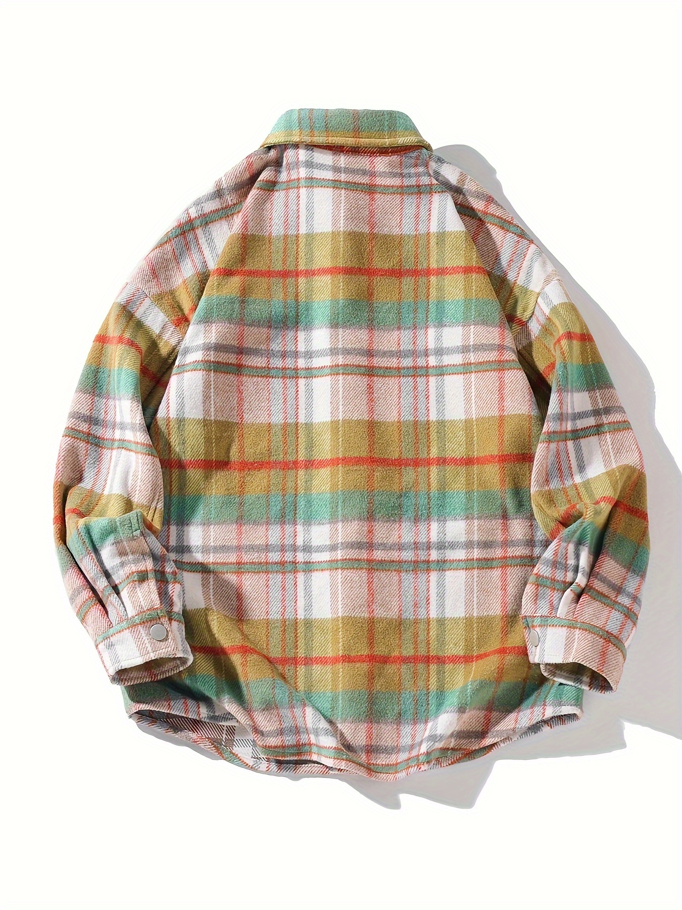 Color Block Plaid Men's Retro Long Sleeve Button Down Shirt With Chest Pockets, Spring Fall Casual Outdoor Loose Shirt