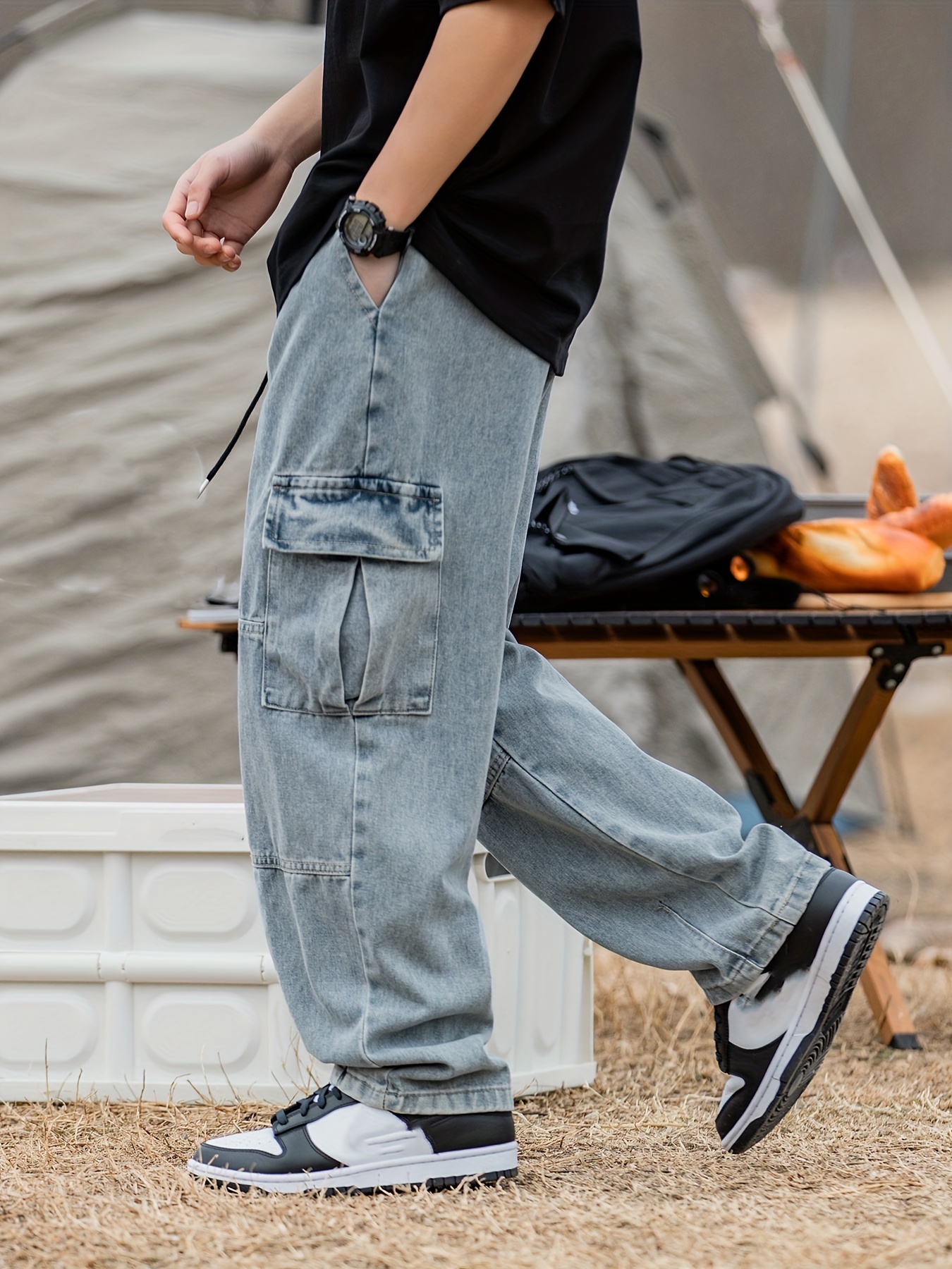 Men's Casual Loose-Fit Jeans with Unique 3D Pocket Design - Cotton Blend, Non-Stretch Denim for Spring/Fall