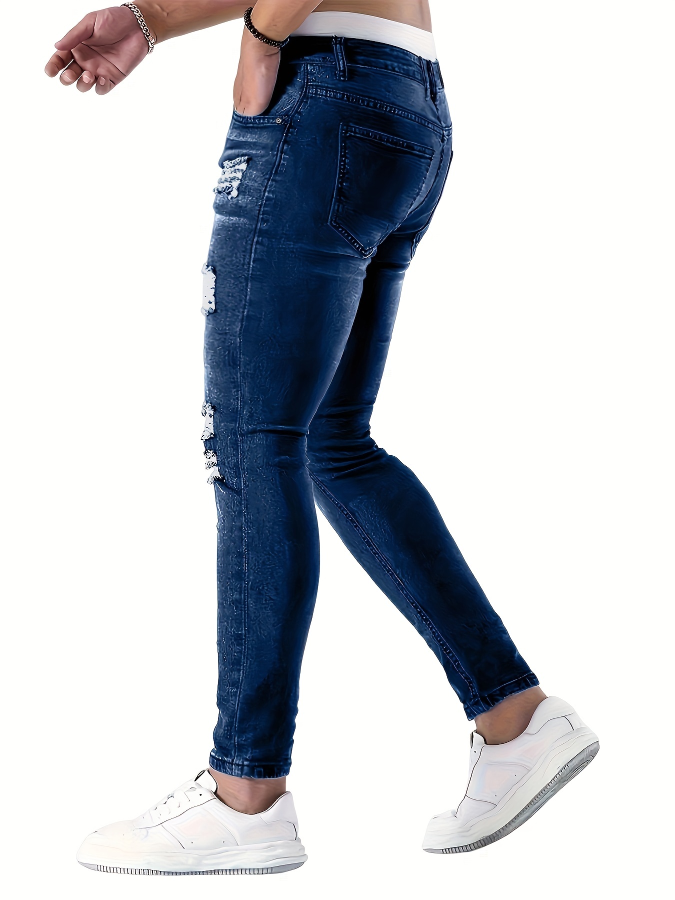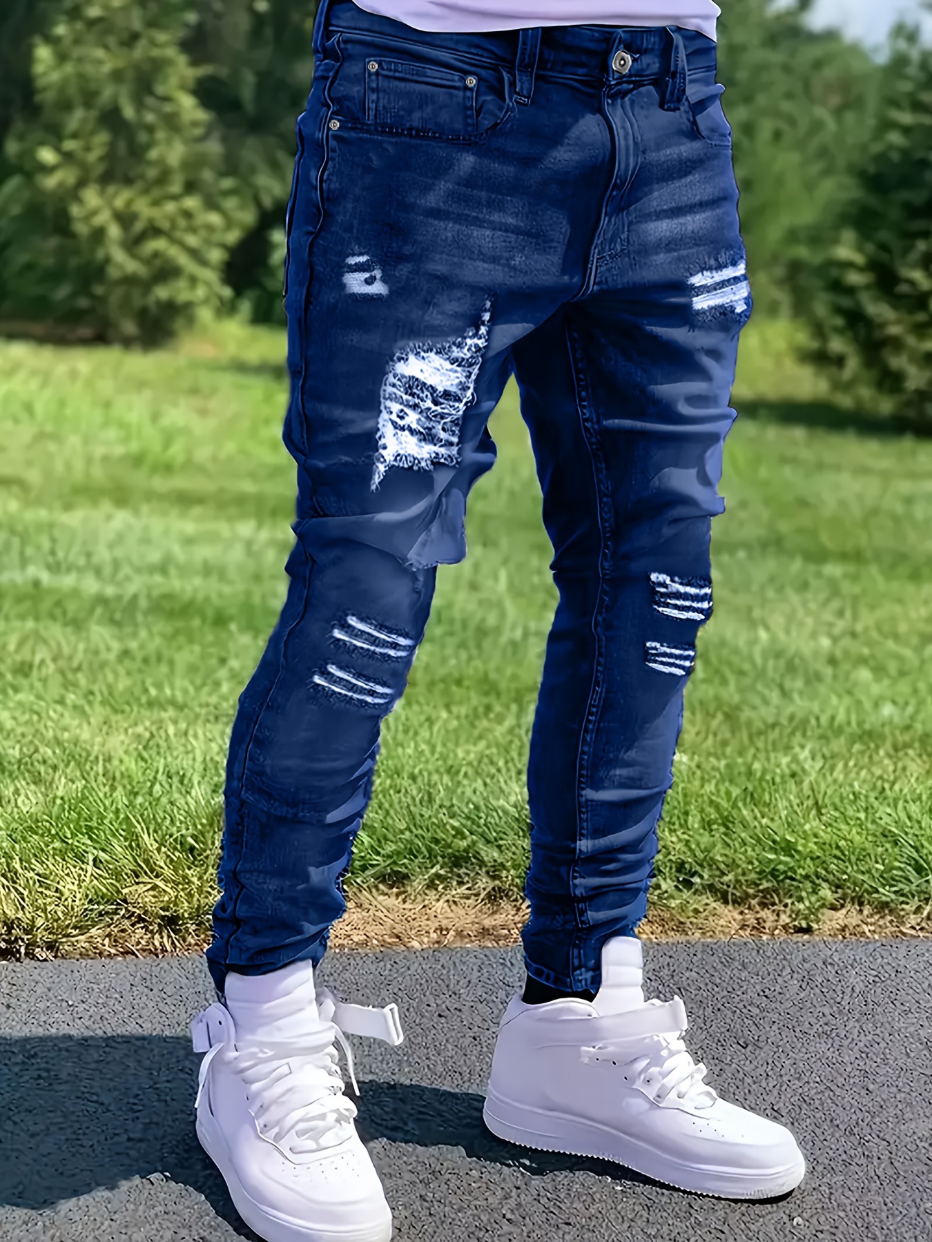 Men's Slim Fit Ripped Jeans, Stretchy Denim, Casual Regular Fit