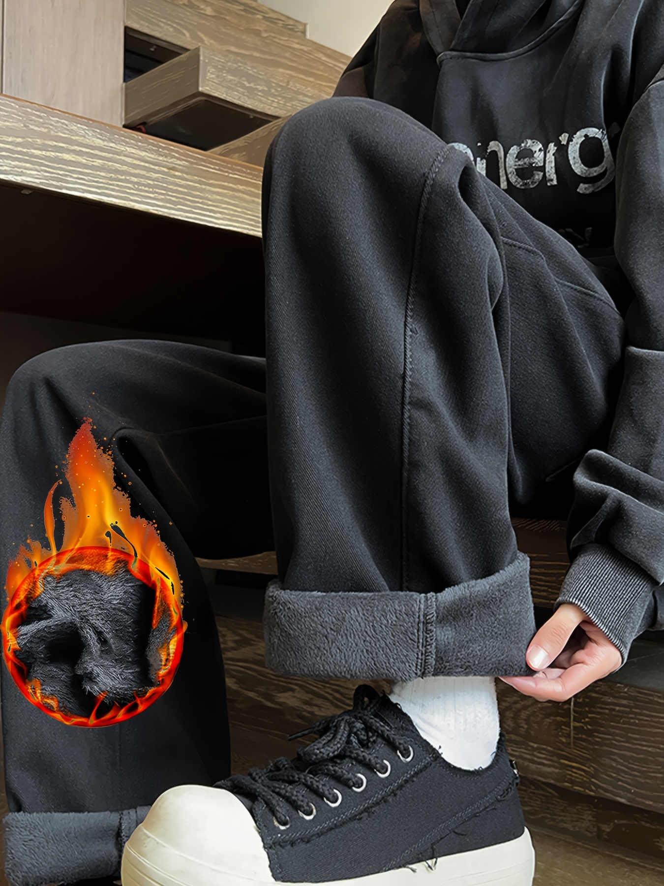Men's Vintage-Inspired Fleece-Lined Jeans - Casual Straight Leg Denim for Fall/Winter, Machine Washable